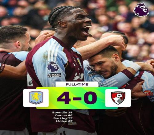 英超第11轮,维拉主场迎战伯恩茅斯。此役,布恩迪亚任意球破门,随后阿马杜-奥纳纳远射再下一城。