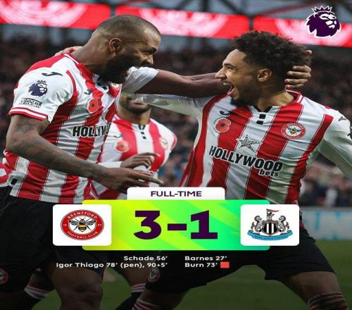 随后,沙德头球破门扳平比分,丹-伯恩送点后染红离场。伊戈尔-蒂亚戈梅开二度帮助布伦特福德锁定胜局。最终,布伦特福德3-1逆转战胜纽卡。