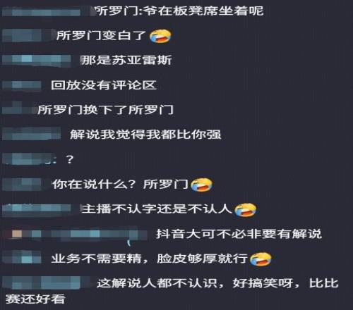 在第三节中段,同曦外援所罗门替补登场换下马内克,而解说则描述成“所罗门换下所罗门”。该行为也是引起了直播间多名球迷的不满。