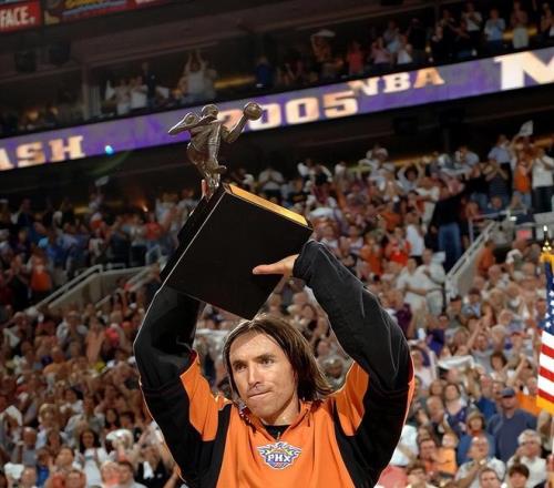 如此出色的表现之下,他也是赢得了这个赛季的MVP。之后到了04-05赛季,30岁的史蒂夫·纳什回归太阳队,首个赛季就得到了15.5分、3.3个篮板和11.5次助攻,帮助太阳队拿到了全联盟第一的62胜20负的战绩,并且一路打进了西部决赛,所以他也是拿到了MVP。